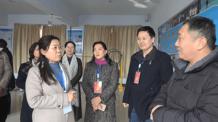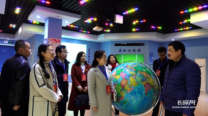 全国人大代表陈凤珍(右二)在邢台市第十二中学进行调研。记者 张晓明 摄