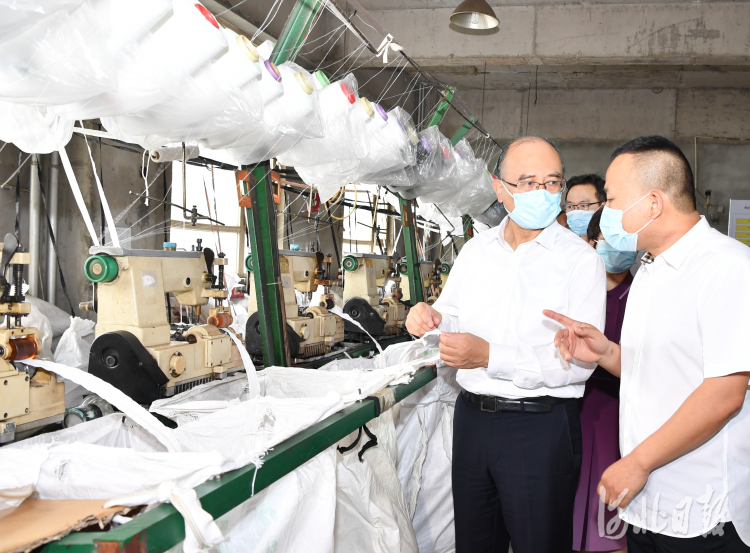 9月9日,省长许勤在保定市白沟新城调研检查。这是许勤深入恒昌拉链制造有限公司,察看产品生产过程。河北日报记者 孟宇光 摄