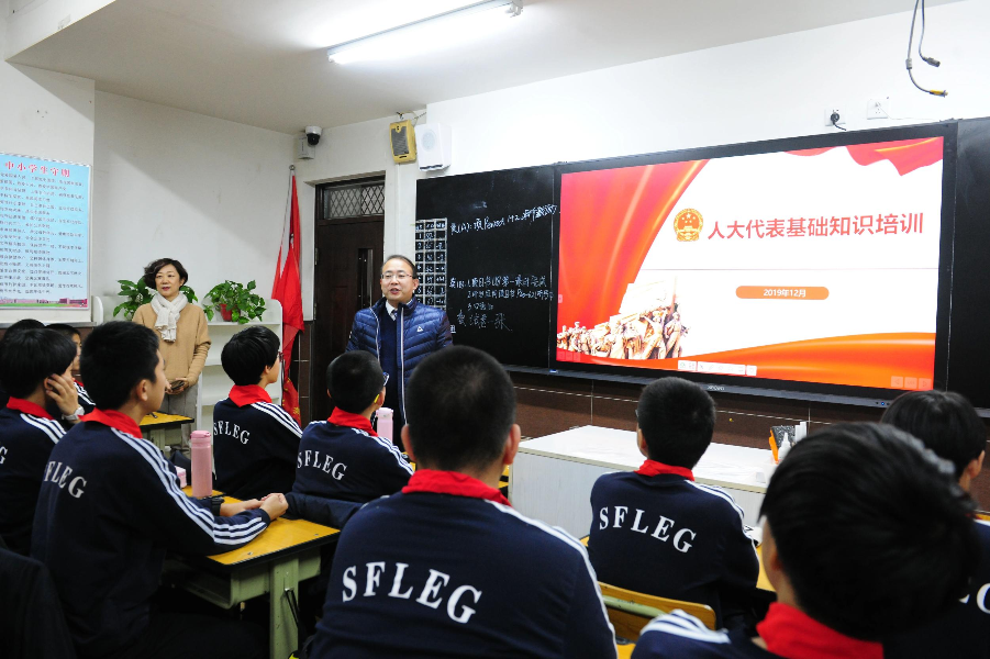 石家庄裕华区人大代表胡延宾深入石外(21)班宣传人大制度。