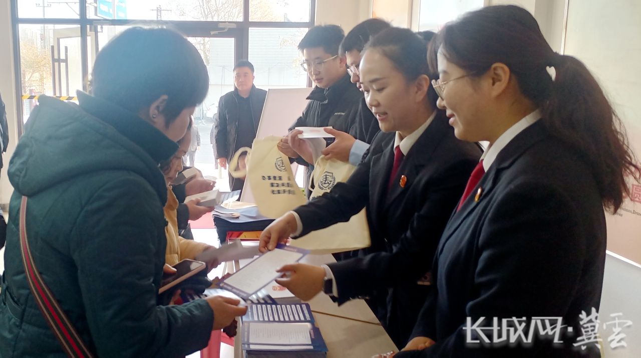工作人员向群众发放宪法宣传册。长城网·冀云客户端记者蔡洪坡 摄