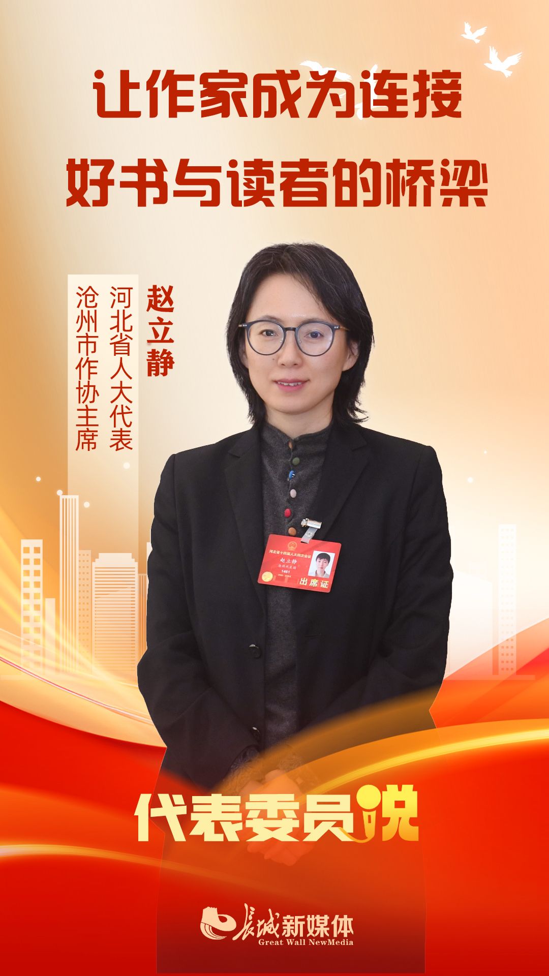 “政府工作报告提出,推动文化体育事业繁荣发展。全民阅读不仅是个人修养的提升,更是国家文化软实力的根基。而作家,作为文字的创造者、思想的传递者,应该成为连接好书与读者的重要桥梁。”1月27日,在河北省两会上,省人大代表、沧州市作协主席赵立静带来了关于建立作家群体深度参与全民阅读长效工作机制的建议。