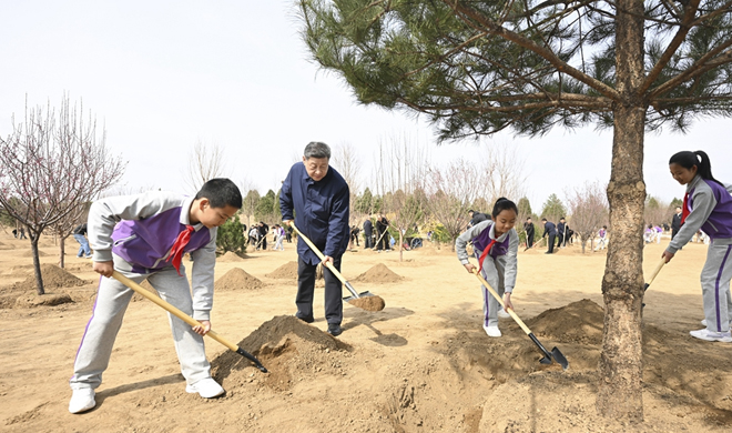 习近平在参加首都义务植树活动时强调 为山川大地增添锦绣 让...